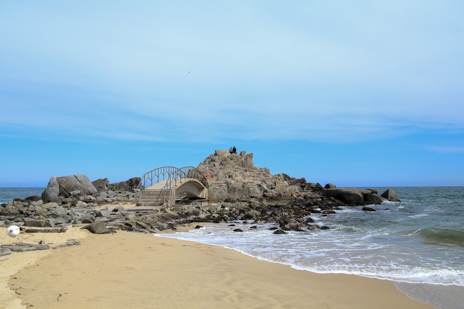강릉하면 가장 먼저 떠오르는 곳이 경포대와 경포해변이지만 최근에는 가볼만한 해수욕장이 훨씬 더 많아졌는데요, 사천진 해수욕장도 그 중 한곳입니다. 경포해변에서 북쪽으로 올라가면 나타나는 곳으로 한적하고 조용해 산책하기 제격인 곳이예요. 이곳에는 작은 바위섬이 있는데 바위섬 위에 오르면, 마치 바다 위에 둥둥 떠 있는 것 같은 느낌이 들어 이색적인 체험이 가능합니다. 주변에는 사천진해변 바위섬과 가깝게 카페들이 즐비해 있어 탁 트인 사천진해변의 백사장과 푸른 바다를 바라보며 커피를 마시는 여유를 부릴 수 있어요.