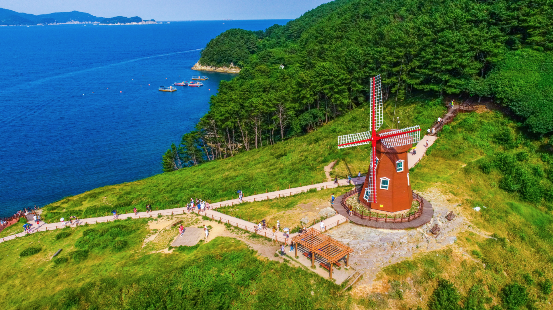 거제도 가볼만한곳 베스트10에 반드시 포함되어야 하는 명소 중 하나가 바로 바람의 언덕입니다. 우리나라 같지 않은 환상적인 풍경을 자랑하는 곳으로 푸른 하늘과 바다가 만들어내는 동화같은 풍경을 보고 있노라면 감탄사가 절로 나오는 여행지예요. 그 중 바람의 언덕의 상징은 풍차가 있는 언덕 정상인데요, 멋진 풍경을 배경으로 인증샷도 남기고 바닷 바람을 맞으며 산책길을 따라 걸으면 저절로 기분이 좋아질 것입니다.