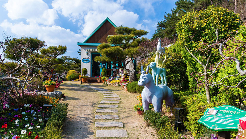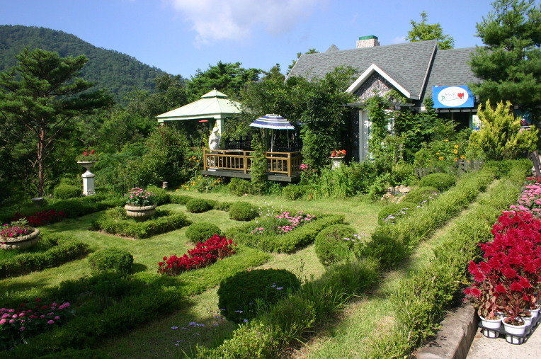 원예예술촌은 독일마을 위쪽 낮은 언덕에 위치하고 있어 두 곳을 함께 둘러 보시면 좋은데요, 지난 2009년 5월에 문을 연 이곳은 약 5만여 평 대지에 세계 각국의 다양한 테마 정원이 들어서 이국적인 풍경을 자랑하는 곳입니다. 베르사유궁전의 정원을 본떠 만든 프랑스식 정원 프렌치 가든을 비롯하여 일본풍 정원 ‘화수목(花水木), 영국식 정원 ‘와일드가든’, ‘꽃섬나드리’라는 이름의 우리나라 정원까지 다양한 컨셉의 정원을 배경으로 사진을 찍기에도 좋아요.