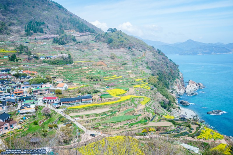 남해 가볼만한곳 베스트10 중 첫 번째로 소개해 드릴곳은 대표적인 남해의 명소 가천 다랭이마을입니다. 남해여행의 1순위라고도 할 수 있는 이곳은 남해섬 남쪽에 바닷가와 경계해 있는 마을로 45도 경사 비탈에 석축을 쌓아 108층이 넘는 계단식 논을 일구어 놓은 곳입니다. 산비탈을 깎아 만든 계단식 논 아래로 푸른바다가 펼쳐지는 독특한 장관을 자랑하며 입소문을 타게 된 곳인데요, 최근에는 관광객들이 늘어나면서 새로운 건물과 카페 등이 생겨 초기 그대로의 모습은 볼 수 없지만 여전히 인생샷을 남길 수 있는 장관을 자랑하는 곳이예요.