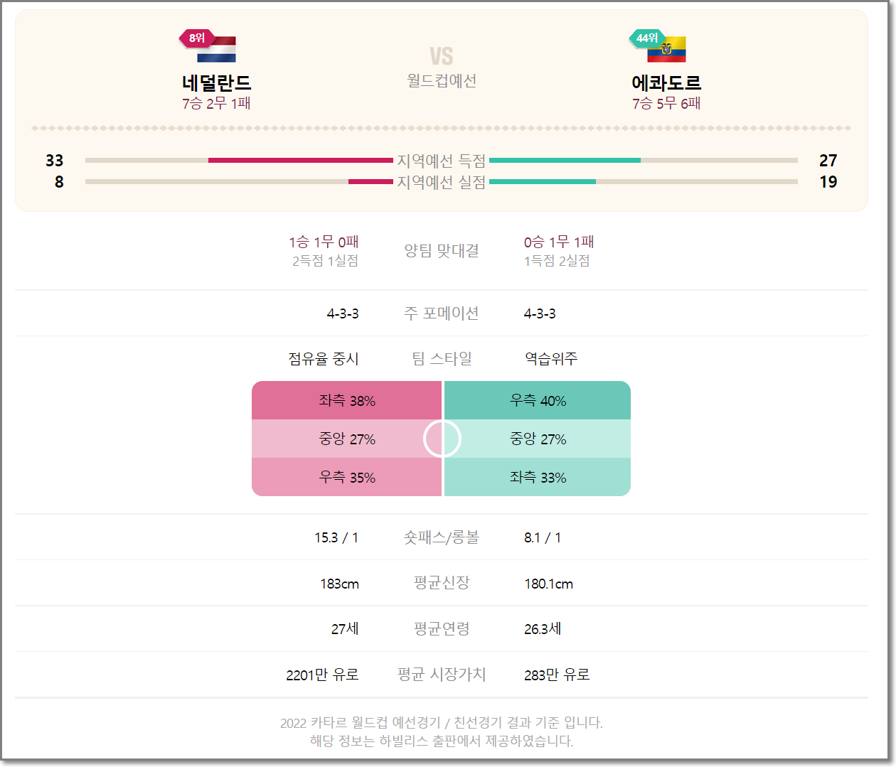 네덜란드 에콰도르 피파랭킹