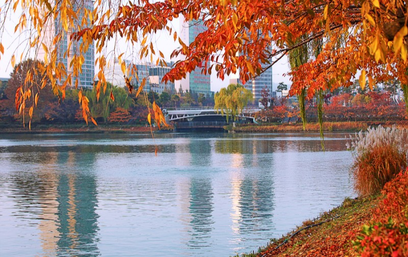 잠실 송파나루공원은 석촌호수를 끼고 있어 여유롭게 산책을 즐기며 단풍을 구경하기에 좋습니다.