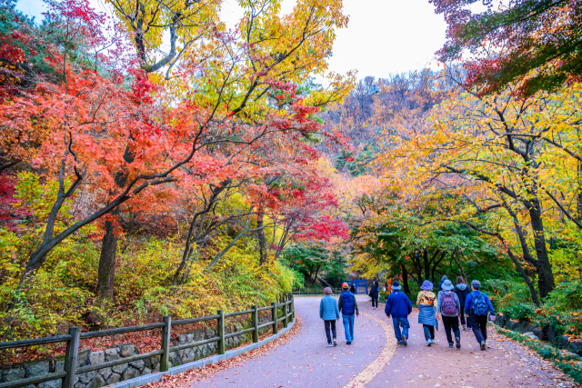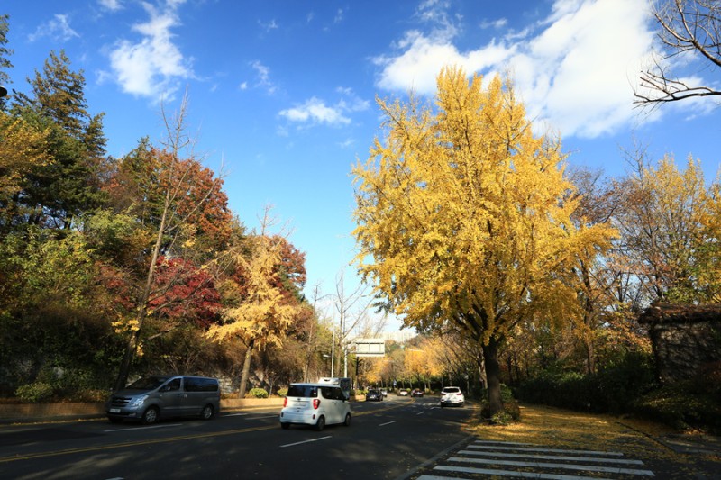 서울에서 단풍이 일찍 드는 곳 중 하나인 관악산 산책로는 서울대 정문에서 관악산 입구까지 이어지는 2km 산책로를 말합니다. 왕벚나무가 많아 멋진 단풍을 볼 수 있습니다.