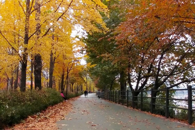 여의도공원은 약 3.1km에 이르는 잘 정비된 가로수가 갖춰져 있어 가을의 여유를 만끽하기에 제격입니다.