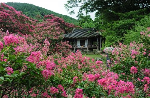 담양을 대표하는 조선시대 민간정원인 명옥헌 원림은 배롱나무 꽃으로 유명한 곳인데, 배롱나무 꽃은 우리가 흔히 백일홍이라 부르는 꽃이예요. 특히 8월이면 연분홍 꽃망울이 팝콘 터지듯 만개하여 한 폭의 그림 같은 장관이 펼쳐져 많은 여행자가 이곳을 찾고 있습니다. 늦가을의 명옥헌 원림은 또 배롱나무의 온전한 모습을 만날 수 있어 나름의 매력이 있습니다. 이곳은 조선 중기 오희도가 자연을 벗삼아 살던 곳이었는데 그의 넷째 아들 오이정이 뒤를 이어 이곳에 운둔하면서 도장곡에 정자를 짓게 되었다고 전해지고 있어요. 앞뒤로 네모난 연못을 판 뒤 주변에 소나무, 배롱나무 등을 정원을 가꾼 것이 오늘날 명옥헌 원림에 이르게 되었다고 합니다. 명옥헌이라는 이름은 못의 물이 넘치고 물끼리 부딪히는 소리가 옥구슬 같다고 하여 지어진 것이라네요.