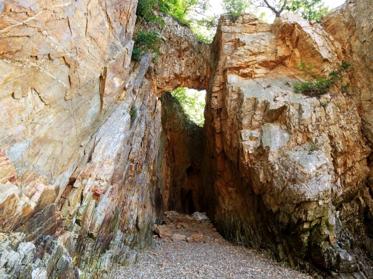 충남 당진시 장고항은 일출 명소로 유명한 노적봉이 있는데요, 이 노적봉에서 뒤로 돌아가면 용천굴이 숨겨져 있습니다. 용천굴은 굴 위로 용이 승천했다 하여 붙여진 이름으로 최근 새로운 해돋이 명소로 입소문을 타기 시작한 곳이예요. 기이한 바위 사이로 푸른 하늘이 보이는 독특한 풍광을 제공하는 이곳은 햇살이 들어오면 그야말로 신비로운 분위기를 한껏 연출하여 인생샷을 찍을 수 있는 곳입니다.