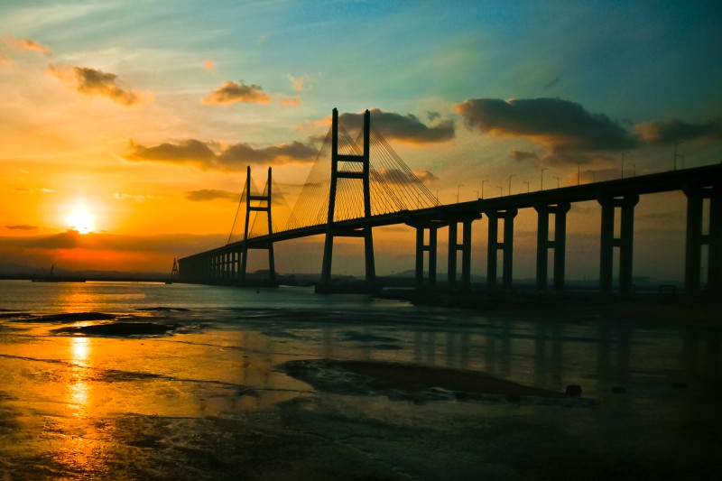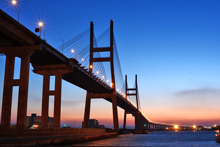 서해대교는 1993년 11월 착공하여 2000년 11월까지 7년의 공사 끝에 완공되어 현재 당진시의 랜드마크로 떠오른 명소입니다. 아산만의 넓은 바다 위에 구름다리처럼 웅장하게 펼쳐진 서해대교는 동북아 물류 수송의 중심인 서해안의 관문이기도 한데요, 노을과 조화를 이루어 멋들어진 경관을 연출하는 곳으로 주탑의 높이가 무려 60층 건물높이인 182m에 달하는 엄청난 규모를 자랑하고 있습니다. 또한 총 연장 7.3km, 폭 31.4m의 규모로 교량 주탑의 모양이 사찰의 당간지주 형상으로 구현되어 한국적 조형미도 물씬 느낄 수 있는 곳입니다.