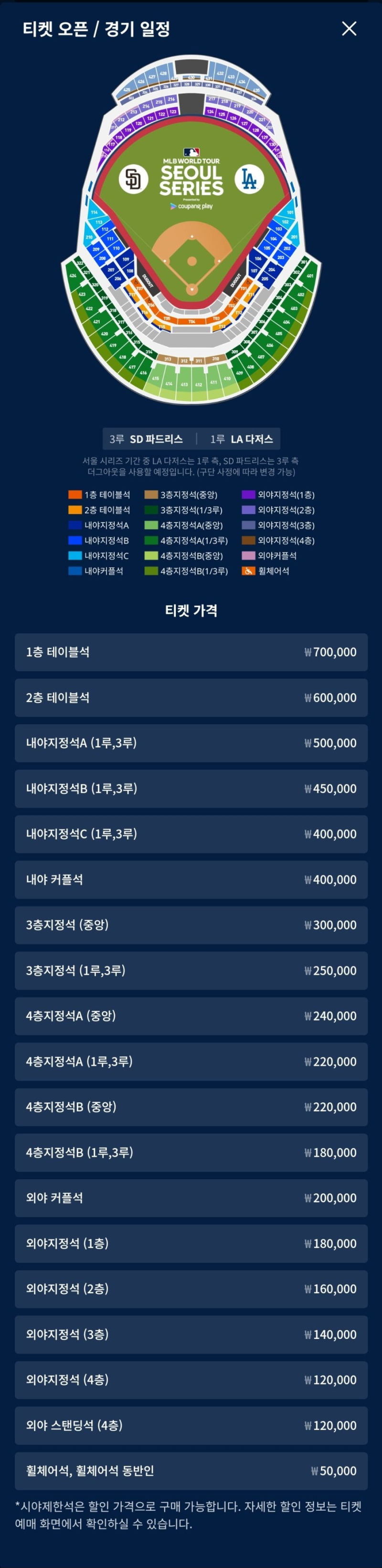 메이저리그 한국 개막전 티켓