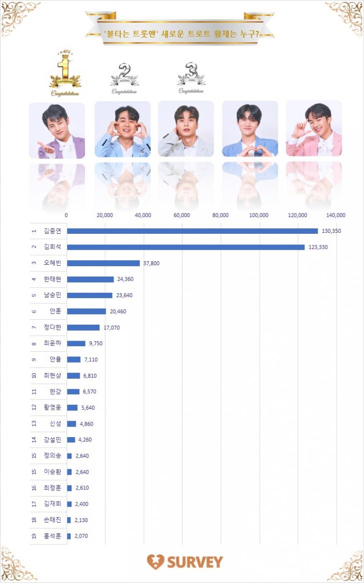 불타는 트롯맨 참가자 명단 투표 상황 (12월 18일 10시 30분 기준)