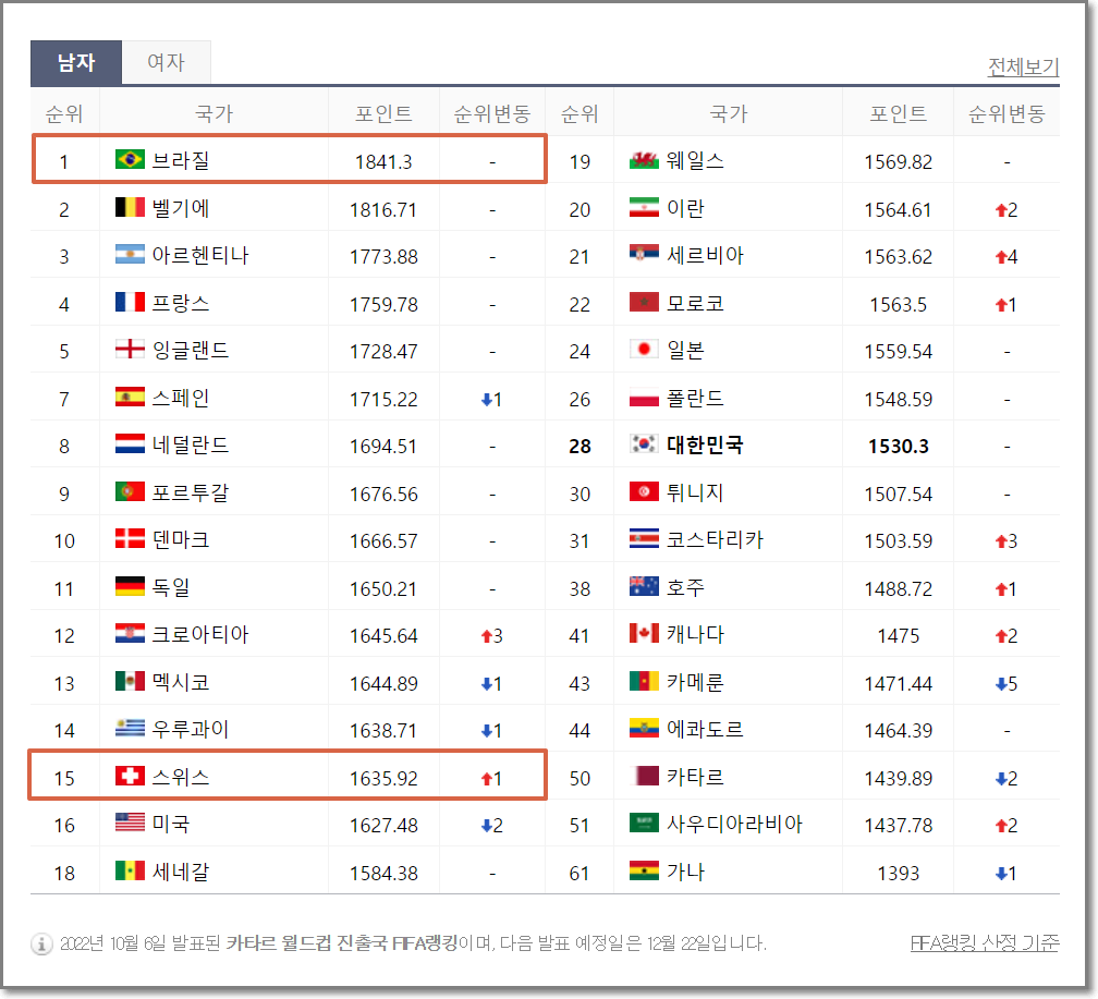 | 브라질 축구대표팀 명단 피파랭킹 한국 16강 상대 (0) | 2022.12.03 |
