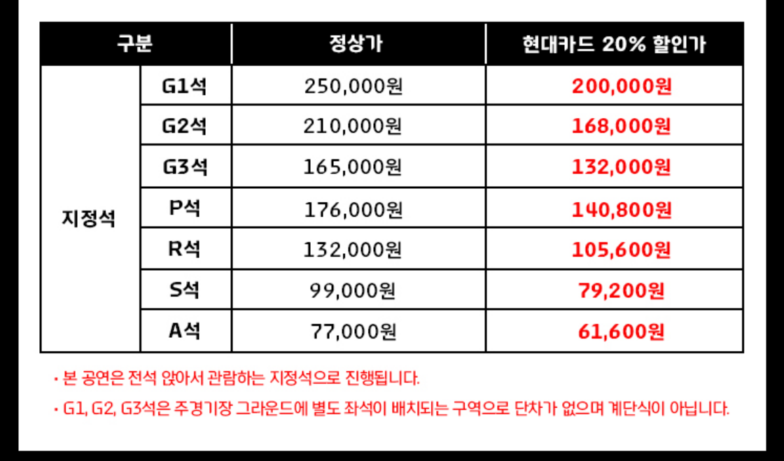 * 현대카드 결제 시 20% 즉시 할인, 전석 지정석