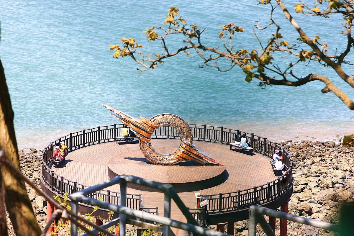 부두치 해변부터 촛대바위까지 나무데크가 이어져 있는 산책로에서는 승봉도의 여러 명소들을 감상하며 바닷가 산책을 즐길 수 있습니다. 약 40분간 해안을 따라 가볍게 걷기 좋은곳인데요, 푸른 바다를 보며 섬의 고요함을 느낄 수 있기 때문에 인파가 많지 않은 조용한 곳을 좋아하는 분들에게 추천해요. 부두치 해변의 끝에 도착하면 작은 바위섬 형태의 무인도인 목섬을 만날 수 있으며 해안산책로의 끝인 해안절벽에 세워진 신황정에 오르면 승봉도의 풍경을 한눈에 볼 수 있답니다.