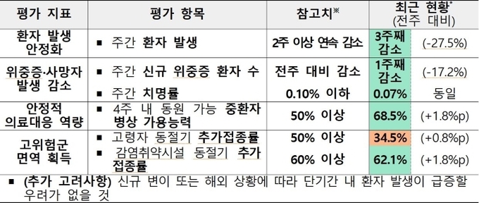 2020년 10월 처음으로 마스크 착용 의무를 도입한 지 약 2년 3개월 만에 정부가 이달 30일부터 실내 마스크 자율화를 시행합니다. 실내 마스크 착용 의무 조정지표에는 네 가지가 있는데요, 이 중 '환자 발생 안정화', '위중증·사망 발생 감소', '안정적 의료대응 역량' 등 세 가지 조건이 충족되었기 때문에 이러한 결정이 내려지게 된 것이라고 합니다.