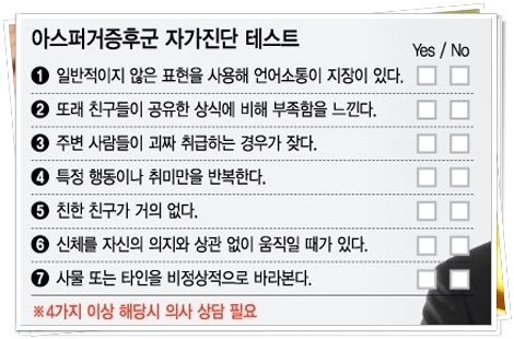 아스퍼거 증후군이란 전반적 발달장애 중 하나로, 지적 능력은 거의 정상이지만 사회적 관계형성능력에 문제가 있으며 특정한 것에 과도한 집착을 보이는 질환을 말합니다.