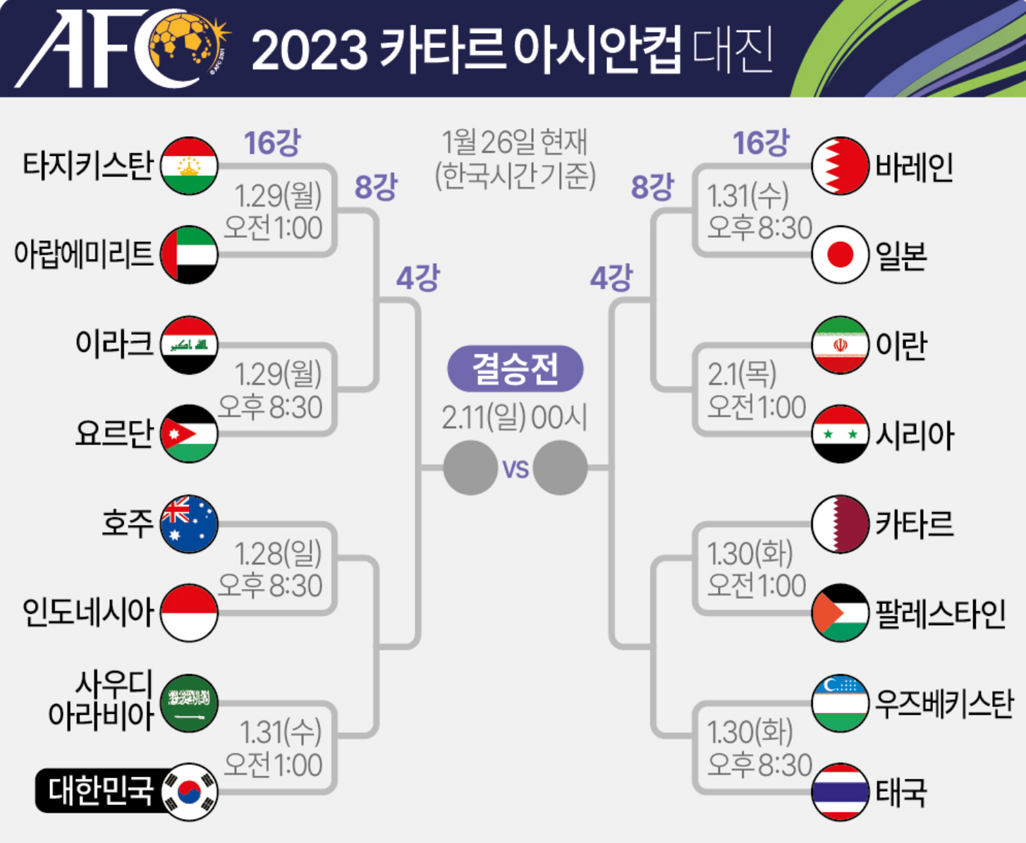 아시안컵 축구 16강 대진표