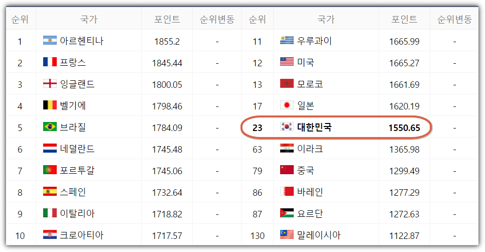 한국 사우디아라비아 피파랭킹 전적 전력 분석