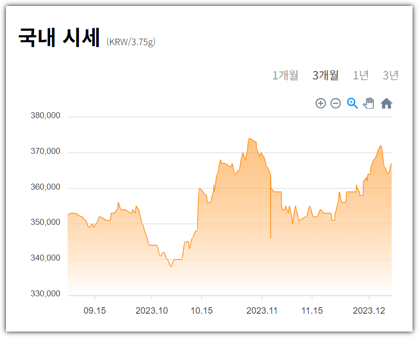● 살 때 366,000원 (전일보다 6,000원 내림)