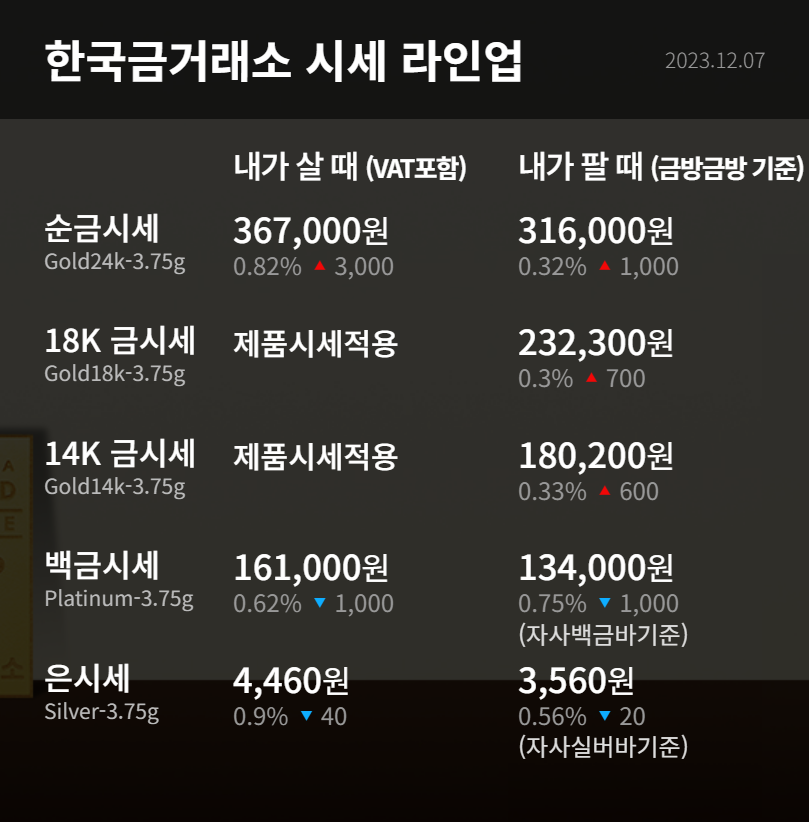 우선 오늘의 금시세는 국제표준금거래소 기준으로 순금 1돈은 전 거래일보다 3000원 하락한 36만 3000원에 구입 가능하며 전 거래일보다 1000원 하락한 31만 5000원에 판매 가능합니다.