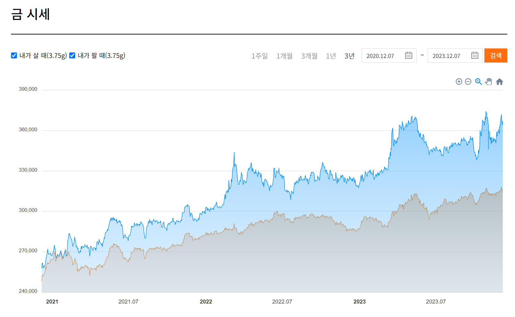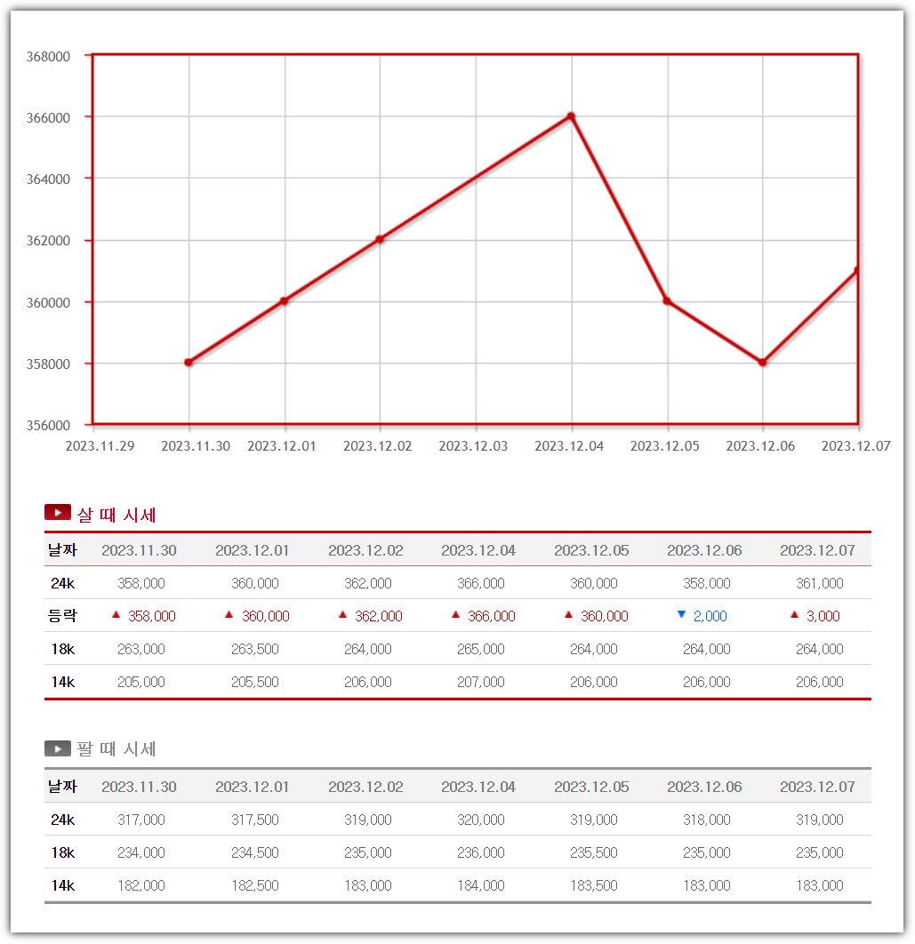 ● 살 때 360,000원 (전일보다 6,000원 내림)