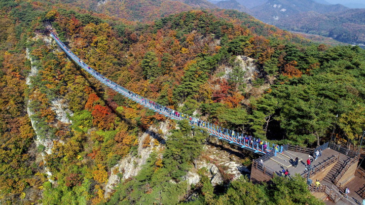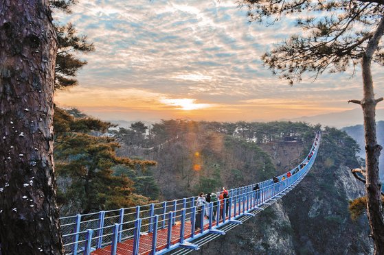 소금산은 작은 금강산이라는 뜻으로 그만큼 아름다운 절경을 자랑하는 곳이예요. 이곳에 조성된 출렁다리는 국내 산악 최장 길이 200미터로 유명한데요, 주차장에서 540여 계단을 거쳐 30분 남짓이면 도착할 수 있습니다. 다리를 건너면서 원주 산악의 아름다움을 감상할 수 있구요, 다리를 지나 다양한 코스로 트래킹하며 원주의 산과 경치를 느낄 수 있는 원주 가볼만한한곳입니다.