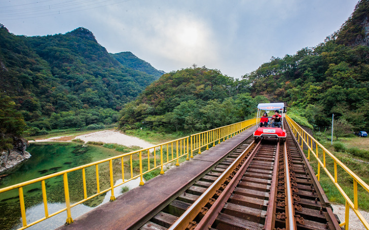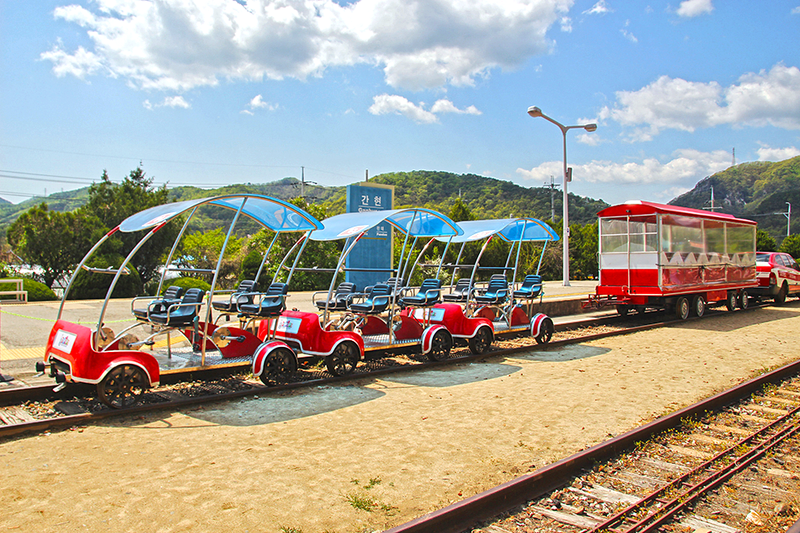 원주레일파크는 간현역과 판대역 사이를 오가며 원주의 산새와 경치를 감상하기에 좋은 곳이예요. 출발 후 기차를 타고 가면서 관람을 하면 되구요, 올때는 레일바이크를 타고 강원도의 향기와 정취를 만끽하며 맑은 공기를 마시는 힐링 체험이 가능한 여행지입니다.