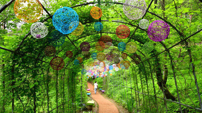 다채로운 식물들과 동화 속에서 튀어나온 귀여운 동화 캐릭터들을 천천히 감상하며 힐링의 시간을 보낼 수 있는 동화마을 수목원은 1,132종에 달하는 다양한 식물을 보유하고 있습니다. 전체 면적이 넓은 편이라 관람하는 데 약 1시간 정도 소요되구요, 둘레길을 따라 걸으며 피톤치드를 느낄 수도 있고 시원한 바람이 불어오는 소나무 숲의 작은 벤치에 앉아 잠시 쉬는 것도 좋습니다. 이밖에 소나무원, 그라스원, 동화 연못, 벽천 쉼터 등 다양한 공간이 마련되어 있어 천천히 둘러보며 산책하기 좋아요.