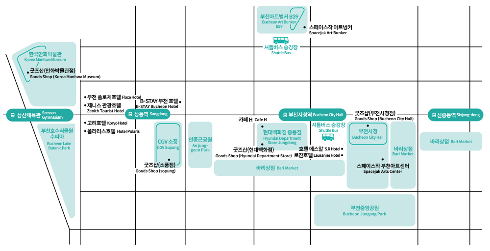 · 주요 상영관: 부천시청 잔디광장·어울마당·판타스틱큐브, 한국만화박물관, CGV소풍, 메가박스 부천스타필드시