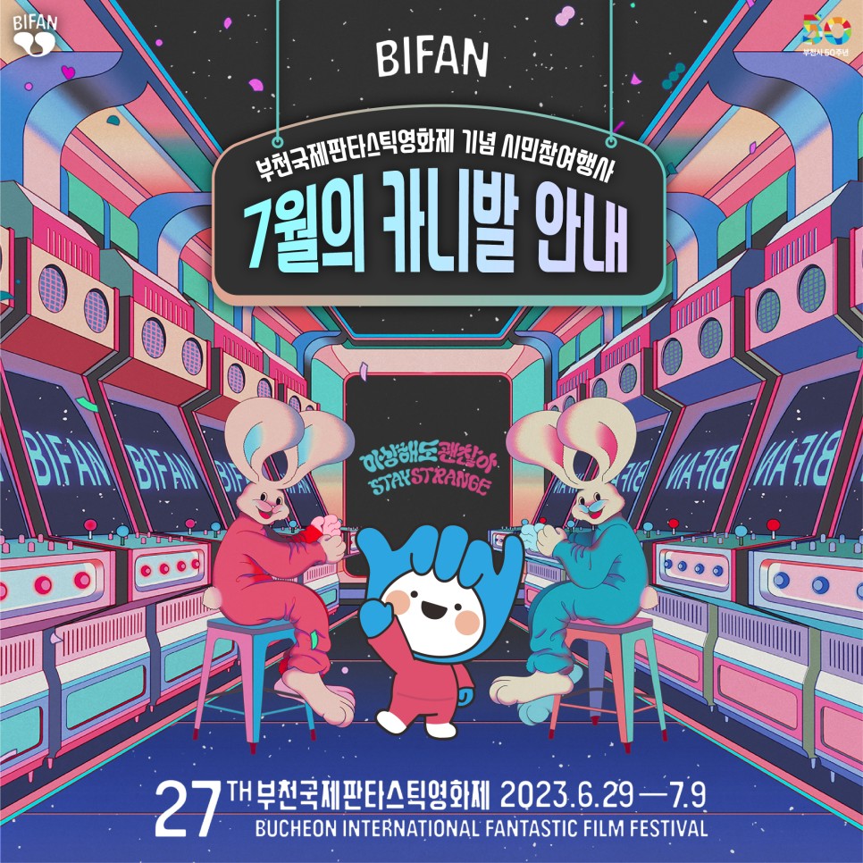 부천 국제 판타스틱영화제(BIFAN)는 1997년 1회를 시작으로 매년 ‘사랑, 환상, 모험’이라는 주제 아래 진행되어 왔습니다. 전 세계의 판타스틱영화를 다양하게 선보이는 영화의 장이라고 볼 수 있는데요, 두터운 국내외 마니아층을 형성하고 있으며 풍부한 상상력과 개성 있는 프로그램으로 국내외 게스트들의 사랑과 지지를 받고 있는 축제입니다.