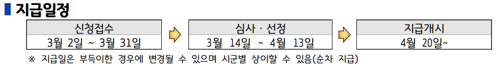 분기별 | 연령 기준일 | 지급 대상자 생년월일 | 신청 기간 | 심사·선정기간 | 지급 개시 |