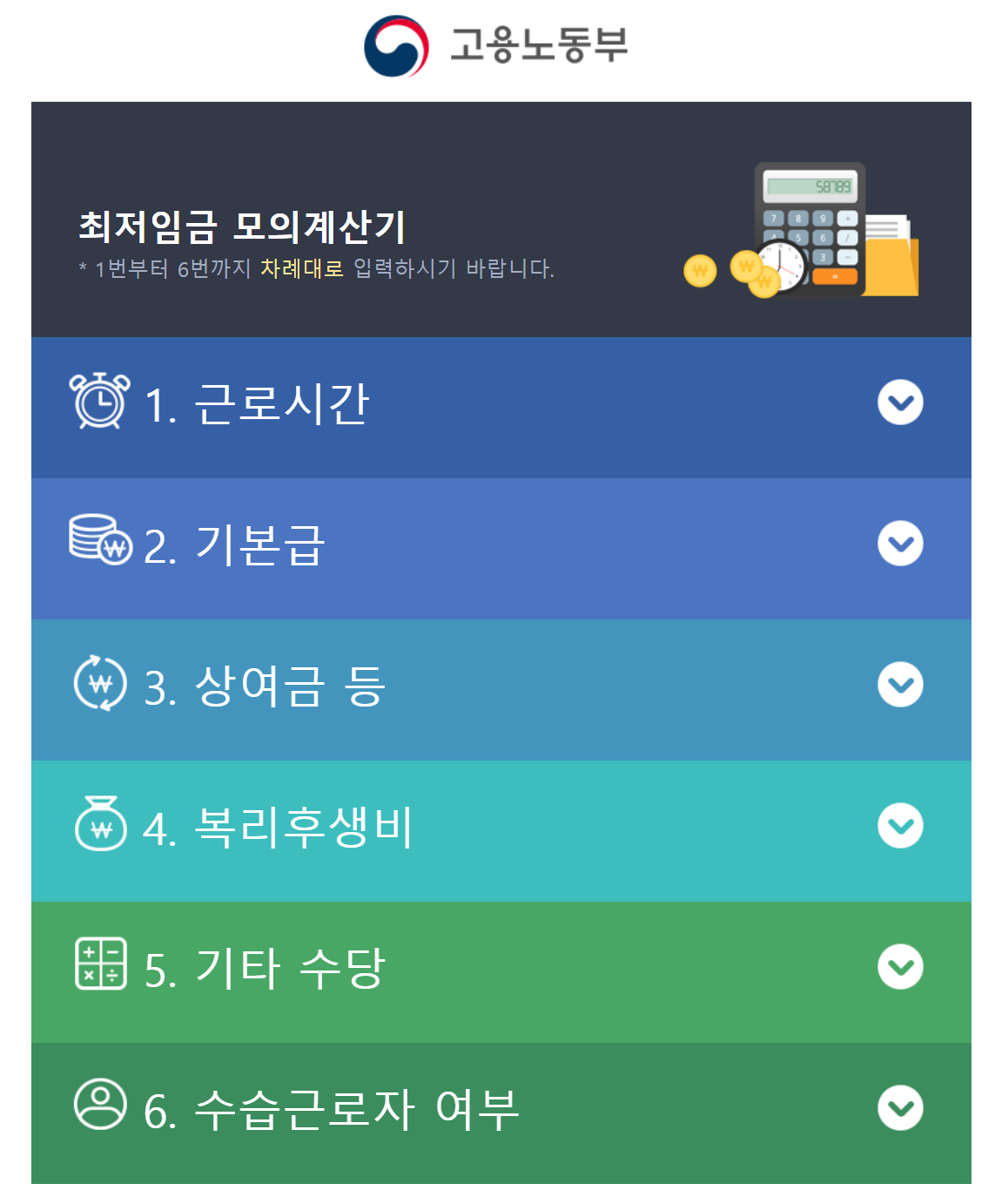 월급 및 연봉이 최저임금 기준에 맞는지 확인하고 싶은 분들이라면 사실, 직접 계산하는 것 보다는 고용노동부 최저임금 모의계산기나 포털 사이트의 최저시급 계산기를 활용하시면 간편하게 예상 월급이나 연봉 등을 알아볼 수 있습니다.