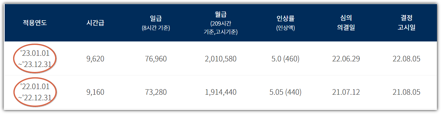 올해 고시된 최저임금은 2023년 1월 1일부터 12월 31일까지 효력이 발생되는 것인데요, 이를