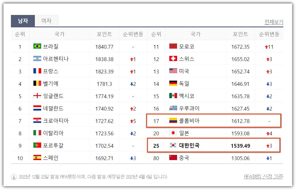 지난해 12월 발표한 FIFA 랭킹을 기준으로 보면 콜롬비아가 17위, 우루과이가 16위, 한국이 25위입니다. 참고로 콜롬비아 대표팀은 한국과의 평가전 이후 28일 오후 7시 20분 일본 오사카의 요도코 사쿠라 경기장에서 일본과 평가전을 치릅니다.