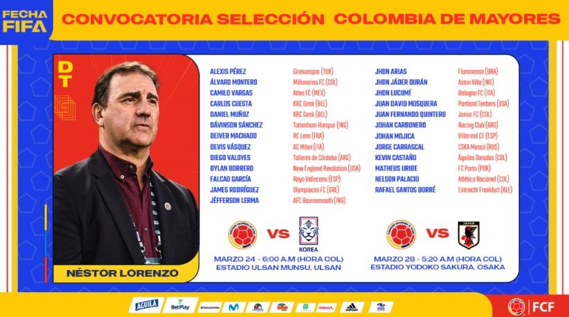 팔카오 역시 A매치 103경기에서 36골을 넣은 베테랑이며, 로드리게스는 89경기에서 25골 기록을 가지고 있습니다. 이 밖에 손흥민과 잉글랜드 프로축구 토트넘 홋스퍼에서 함께 뛰는 다빈손 산체스와 마테우스 우리베(포르투), 헤페르손 레르마(본머스) 등이 명단에 이름을 올렸습니다.