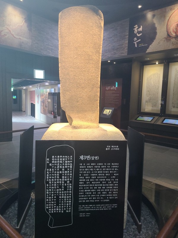 충주는 계림령과 죽령, 남한강 등이 있어 육로와 수로의 요지였다고 합니다. 따라서 삼국시대에는 충주를 손에 넣는 것이 바로 삼국통일의 교두보를 확보하는 것이었는데 충주고구려비는 장수왕이 남한강 유역의 여러 성을 빼앗은 뒤, 그 기념으로 세운 것으로 전해지고 있습니다. 고구려 시대의 비석 중 유일하게 남아있는 충주고구려비는 충주시 가금면 용전리 입석마을 입구에 세워져 있었던 것을 1979년에 발견한 뒤 보물 205호로 지정했다고 알려져 있어요. 현재는 충주고구려비 전시관을 지으면서 내부에 안치되어 있습니다.