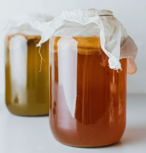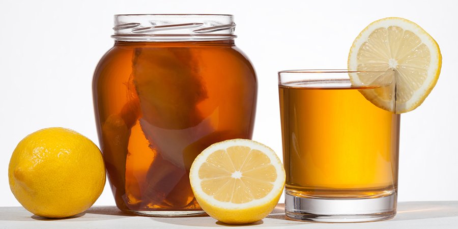 홍차나 녹차를 우린 물에 효모와 미생물로 구성된 일종의 효모 진균인 유익한 균, 스코비를 넣어 발표시킨 건강음료인데요. 발표시키기 위해 설탕을 함께 넣고 일주일 이상 숙성시키는 과정에서 천연 탄산의 톡 쏘는 청량감까지 가미되어 맛과 영양을 가득 담은 차가 완성돼요.