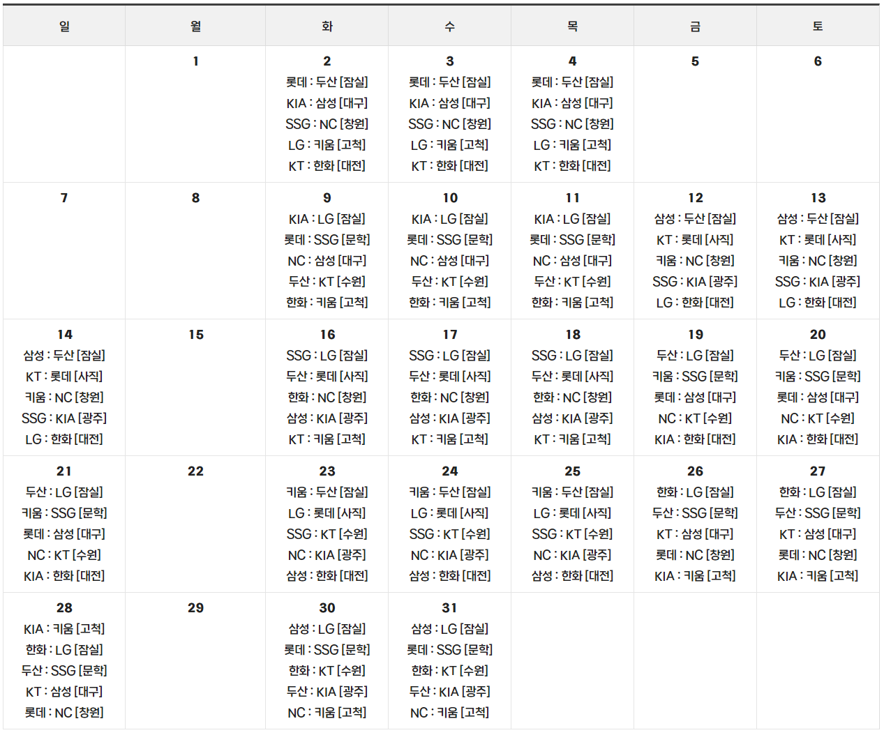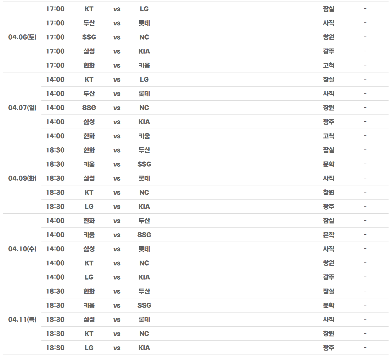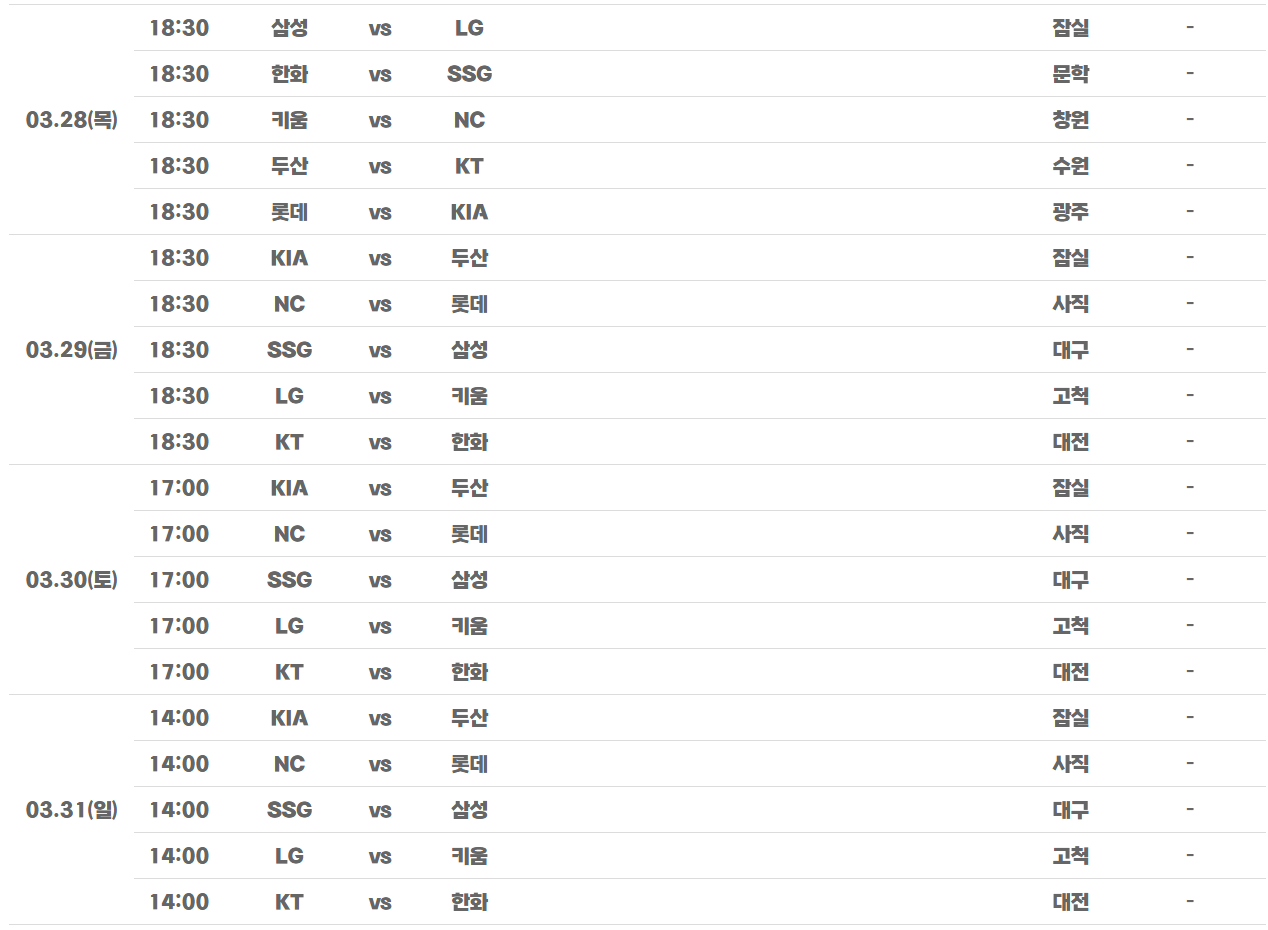 시범경기 개막전은 수원(LG-KT), 대전(삼성-한화), 사직(SSG-롯데), 창원(KIA-NC), 마산(키움-두산) 구장에서 펼쳐집니다.