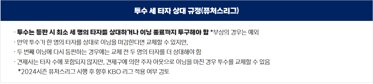KBO는 지나치게 전략적인 수비 포지셔닝을 방지하기 위해 내야수와 외야수의 특정 정렬을 요구하는 수비 시프트 제한 규칙을 시행할 예정입니다. 또한 1, 2, 3루 베이스의 크기가 커져 베이스 사이의 거리가 좁아지고 보다 공격적인 주루 플레이가 장려될 것입니다. 이러한 변화는 경기 시간을 단축하고 더욱 역동적이고 흥미진진한 경기 환경을 조성하는 것을 목표로 합니다.