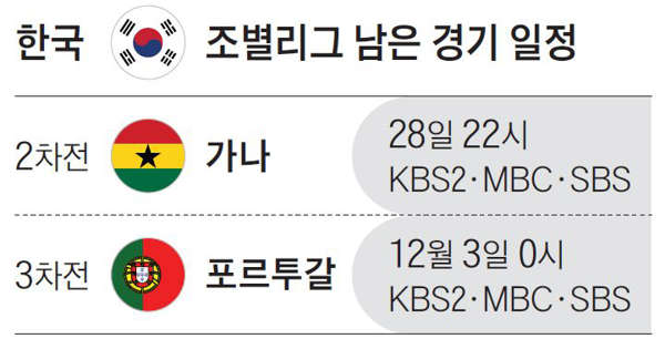 우리나라는 사상 두 번째 월드컵 원정 16강 진출에 도전하는 것으로 지난 24일 우루과이와 1차전에서 0-0으로 비겨 포르투갈(1승 승점 3)에 이어 우루과이(1무 승점 1)와 공동 2위에 올라 있는 상황입니다. 이제 상대는 포르투갈에 2-3으로 패한 조 최하위 가나(1패 승점 0)인데요, 만만하지는 않지만 16강 진출을 위해선 반드시 잡아야 하는 팀이라고 볼 수 있습니다. 한국 가나 경기시간 역대 전적 심판 전력 분석을 자세히 알아보도록 하겠습니다.