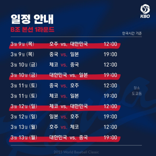2023.01.05 - [Winter Story] - 2023 WBC 야구 대표팀 명단 감독 일정 (월드 베이스볼 클래식)