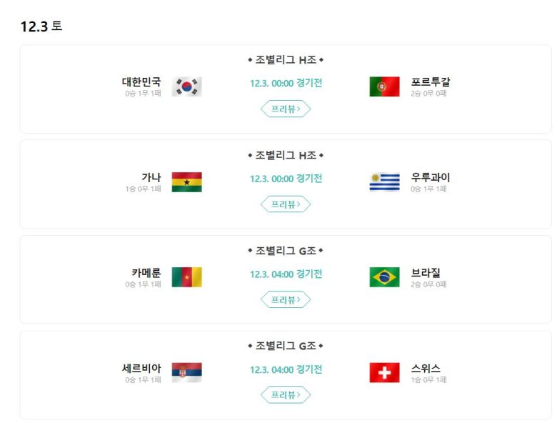 한국 브라질 역대전적 경기시간 16강전 분석 (0) | 2022.12.03 |