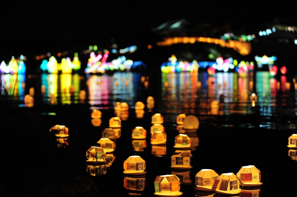 진주남강유등축제는 임진왜란 때 벌어진 진주성 전투에서 적군이 강을 건너려고 하자 강물 위에 유등(기름으로 켜는 등불)을 띄워서 이를 저지했다는 특별한 역사와 함께 이어져 내려오는 빛축제입니다. 낮에도 다양한 체험프로그램이 있지만, 해가 지기 시작할 무렵 등불이 켜지면서 본격적으로 축제가 시작되는데요, 남강의 잔잔한 물결 위해 용, 봉황, 거북이, 연꽃 등 다양한 모양의 수상등이 전시되는 모습은 구경꾼들의 눈을 즐겁게 합니다. 낮에도 수상 불꽃놀이와 워터라이팅쇼 등이 펼쳐져 화려한 볼거리가 가득한 축제이구요, 그 중 축제의 하이라이트는 각자의 소망을 적은 등을 남강에 직접 띄워 보내는 유등띄우기 체험이니 꼭 놓치지 마시기 바랍니다.
