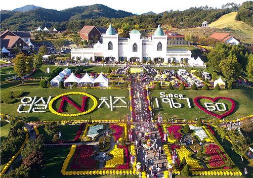 옛 마산지역은 1961년 회원동 일대에서 여섯농가가 전국 최초로 국화 상업재배를 시작하여 우리나라 국화재배의 역사가 담긴 곳이라고 볼 수 있는데요, 1972년 국내 처음으로 일본에 수출을 하기 시작해 더욱 유명해졌습니다. 현재 마산이 전국 국화 재배면적의 13%를 차지할 정도로 자타가 인정하는 우리나라 국화산업의 메카로 발전했다고 하네요. 뛰어난 품질을 자랑하는 마산국화의 우수성을 국내외에 홍보함과 동시에 국화소비 촉진을 위해 2000년부터 마산국화축제가 시작되었다고 합니다.