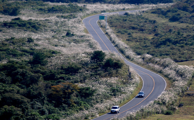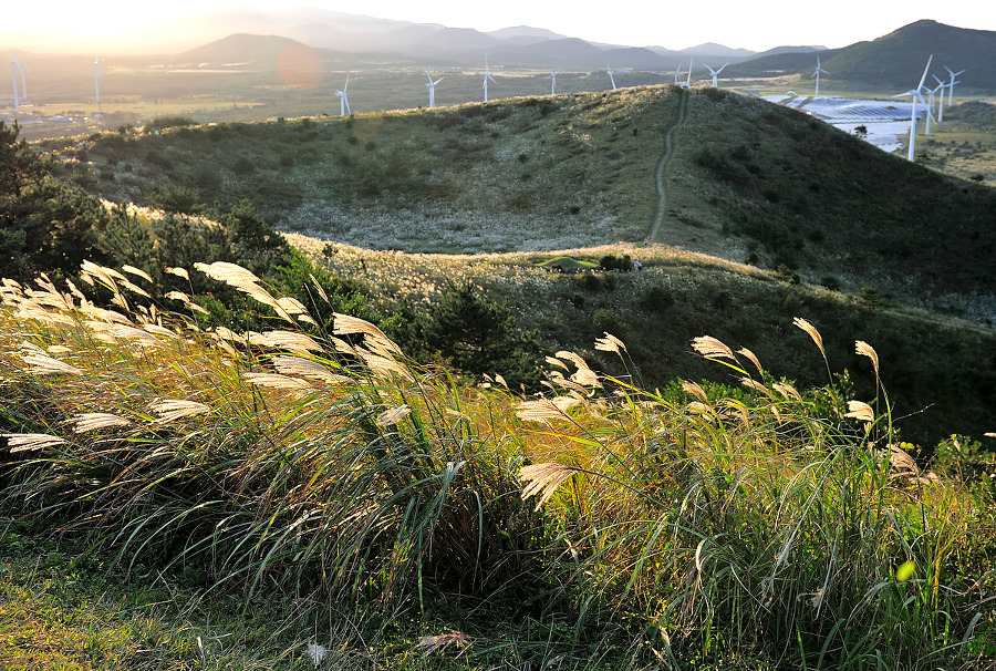 드라이브를 하며 만발한 억새 구경을 할 수 있는 명소를 소개합니다. 서귀포시의 동부권인 구좌읍부터 성산읍 수산리까지 이어지는 약 10km의 중사간 도로인 금백조로인데요, 비자림로에서 백약이 오름 방향으로 빠져나오면 바로 이어지는 곳이예요. 바람에 물결치는 억새 군락과 풍력발전기가 한대 어우러져 이국적인 풍경을 선보이는 곳으로 가을 11월제주도 가볼만한곳 중 한곳으로 추천할만한 곳입니다. 이곳은 무엇보다 차를 타고 드라이브를 하며 평원에 펼쳐진 억새길 사이를 지날 수 있어 낭만적인 기분을 느낄 수 있는 곳인데요, 근처 수산리에 잠깐 들러 함께 둘러보는것도 좋습니다.