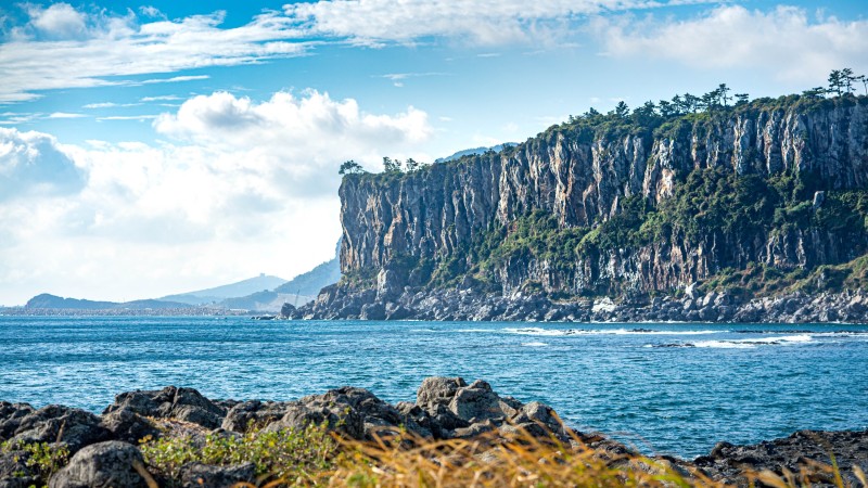 한결 부드러워진 가을 햇살을 맞으며 걷기 좋은 제주의 마을을 소개합니다. 안덕면에 위치한 대평리인데요, 제주어로는 난드르, 넓은 들이라는 뜻을 가지고 있는 이곳에는 박수기정이 있습니다. 박수기정은 높이 약 130m, 길이 1,500m의 병풍이 펼쳐진 듯 웅장한 분위기를 연출하는 절벽으로 박수기정이라는 이름은 바가지로 떠서 마실 샘물이 솟는 절벽이라는 의미라고 해요. 과거 물이 귀했던 제주에는 더욱 그 가치가 높았던 곳이었다고 하는데요, 현재 실제로 해안절벽 아래에 사계절 내내 솟는 샘물이 있다고 합니다. 박수기정을 방문한다면 대평포구 등대에서 바라보아야 그 풍경을 한눈에 담을 수 있다고 해요. 올레길 8코스의 끝이자 9코스 시작점인 대평포구에서 한 폭의 그림 같은 박수기정의 모습을 만날 수 있습니다.