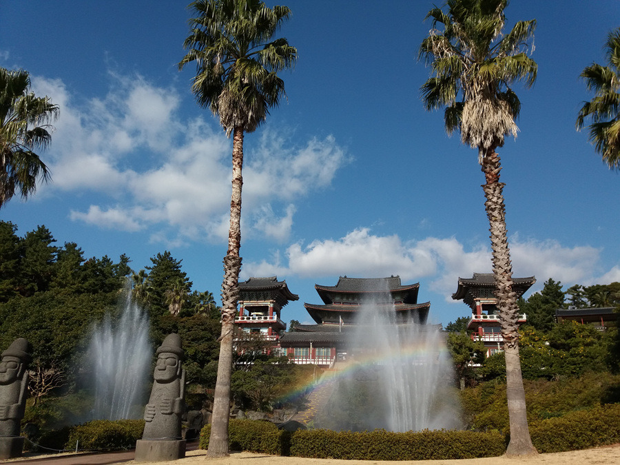 동양 최대 크기의 법당으로 지하 1층, 지상 5층 규모인 약천사는 서귀포시에 위치하고 있습니다. 전체적으로 아름다운 자연과 조화를 이루는 모습이지만 법당에서 서귀포 바다가 보이는 전망이 특히나 유명한데요, 약천사 입구에는 높게 뻗은 야자수와 돌하르방이 있어 제주도 특유의 분위기가 물씬 느껴지는 곳이예요.