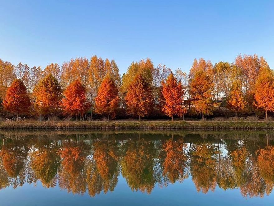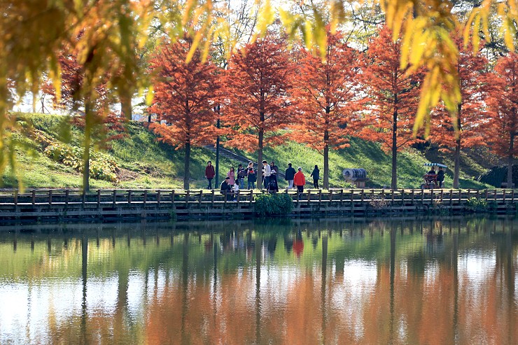 약 2km에 이르는 관방제를 따라서 200~300년 된 나무들이 단풍을 뽐내고 있는 곳입니다. 조용하고 산책하기 좋아 힐링 명소로 많은 관광객들이 찾는 곳이예요.