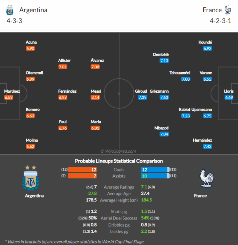 월드컵 결승은 마지막 경기인데다 아르헨티나 프랑스 모두 화력이 막강한 팀이기 때문에 선제골로 주도권을 잡는 쪽이 유리하다고 볼 수 있습니다. 공교롭게도 양 팀 모두 기선을 제압하는 데 능해 아르헨티나는 조별리그부터 4강전까지 빠짐없이 선제골을 터트려 왔고 프랑스 역시 토너먼트 3경기에서 모두 선제골을 넣고 올라왔습니다.