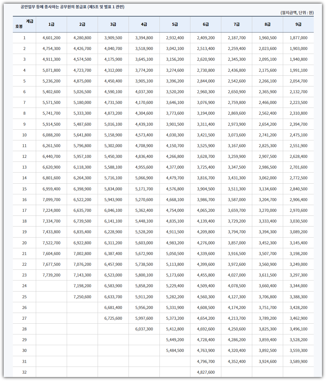 ■ 지도직공무원 봉급표