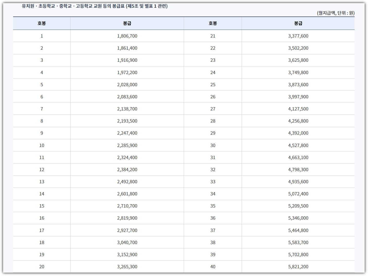 ■ 유치원·초등학교·중학교·고등학교 교원 등 봉급표