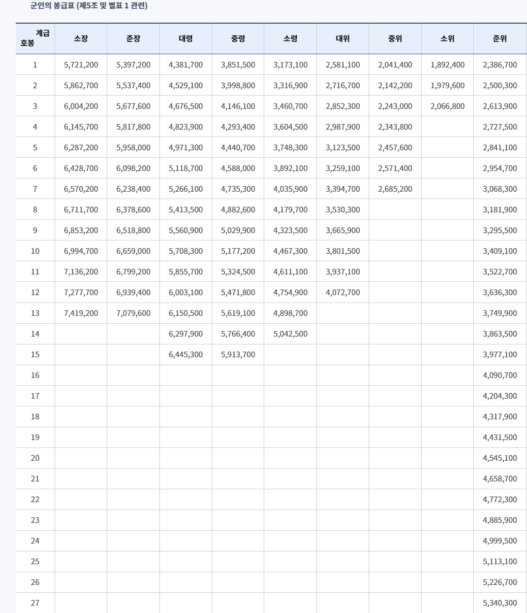 ■ 군 인 봉급표
